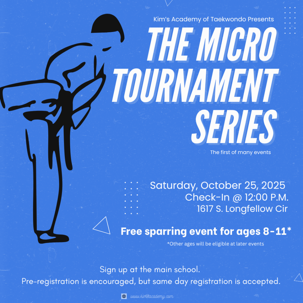 A Micro-Tournament is just like a traditional tournament but on a smaller scale. Competitors are limited to a select group, and competition is limited to one category (either Poomsae or Sparring), ensuring focused competition and a fun, supportive environment.